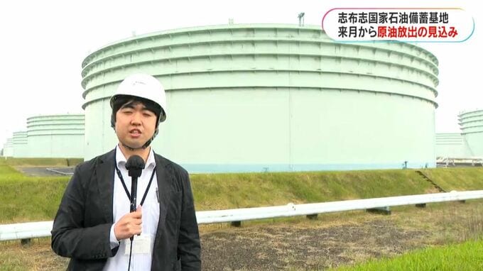 政府はきょう24日、来月から志布志国家石油備蓄基地で原油の放出を始める見込みであることを明らかにしました。石油不足が懸念される中、志布志の備蓄基地を取材しました。