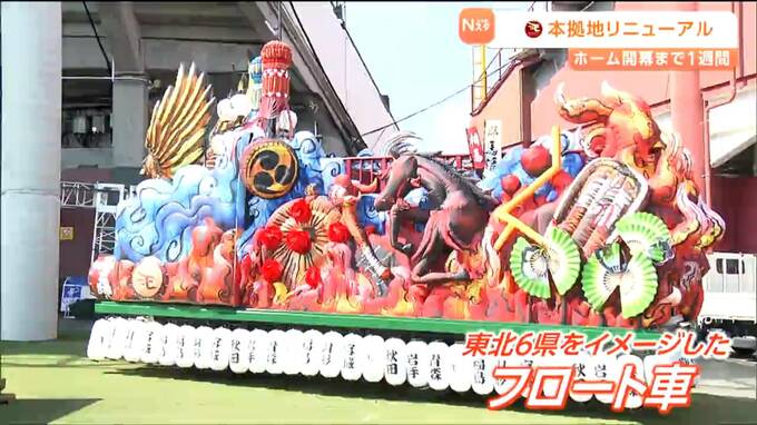 また、祭りの山車を思わせる華やかな装飾を施した車はフロート車と呼ばれています。高さは4メートルあり、試合で勝利した後は、選手たちが車の上に乗り場内を一周するそうです。フロート車には七夕まつりの吹き流しやなまはげといった東北6県を象徴する装飾が施されています。