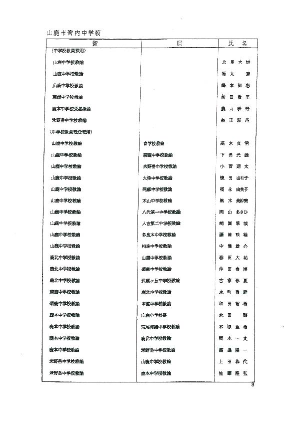 あの先生どこ行くと?熊本県 教職員の人事異動一覧2026〈玉名・山鹿・菊池【小学校・中学校】〉