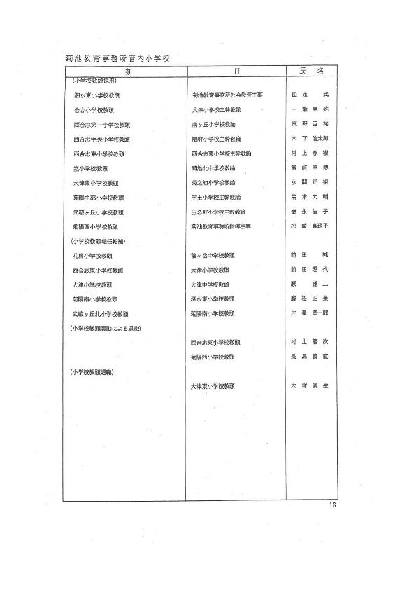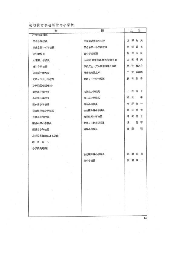 あの先生どこ行くと?熊本県 教職員の人事異動一覧2026〈玉名・山鹿・菊池【小学校・中学校】〉