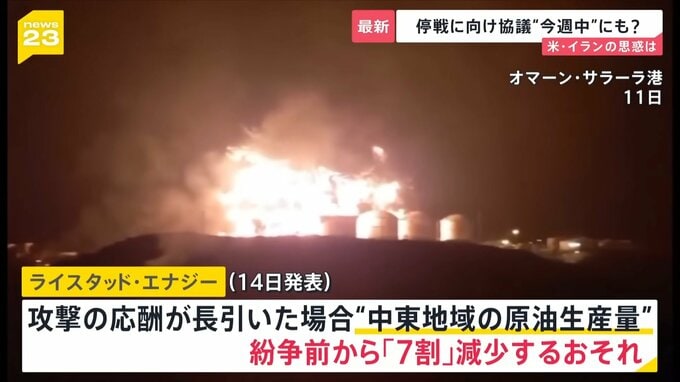攻撃の応酬が長引いた場合、中東地域の原油生産量が紛争前から「7割」減少するおそれがあるとしています。