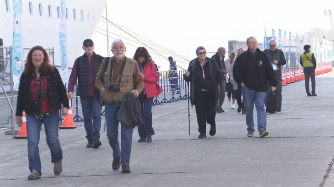 船から次々と降り立った乗客は、浄土ヶ浜や龍泉洞など観光地に向かうツアーバスに乗り込みました。