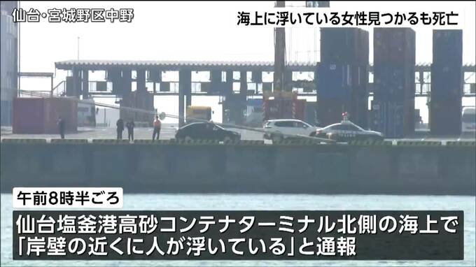 25日朝、仙台港に女性が浮いているのが見つかり、まもなく死亡が確認されました。警察が身元の確認を急ぐとともに詳しい経緯を調べています。