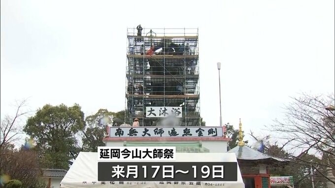 宮崎県延岡市の今山大師では、高さ日本一の弘法大師像を洗い清める恒例の大沐浴(だいもくよく)が行われました。この大沐浴は、「おだいっさん」の愛称で親しまれている九州三大春祭りの1つ「延岡今山大師祭」を…