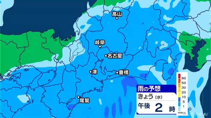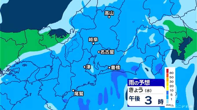 東海地方は広く雨 いつどこで降る?最新の雨シミュレーション 愛知・名古屋・岐阜・三重の天気予報(3/25 昼)