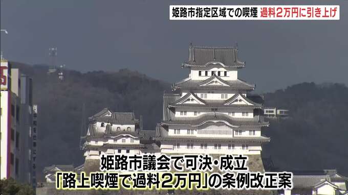 姫路市議会は指定区域で喫煙した場合の過料を1000円から2万円に引き上げる条例の改正案を可決しました。 姫路市議会で可決・成立したのは「路上喫煙で過料2万円」とする条例の改正案です。これまでの条例では、姫…