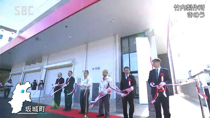 坂城町の竹内製作所で披露されたのは、「パーツセンター」などを兼ねる3階建ての施設で、竣工式には関係者などおよそ20人が出席しました。