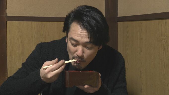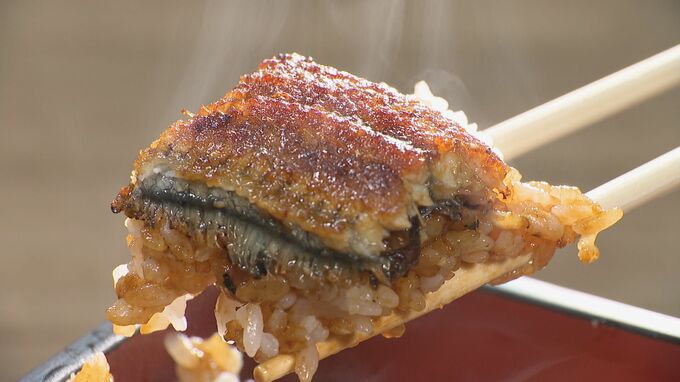 ウナギで「紅白」を表した特製うな重に、小田井さんは「ええ仕事してまっせ!」とその味を絶賛します。