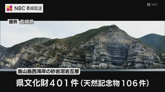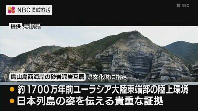 五島市にある島山島西海岸の砂岩泥岩互層が日本列島の太古の姿を伝える貴重な証拠として県の天然記念物に指定されました。