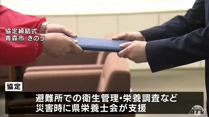 災害発生時に避難者たちの食生活や栄養管理などを支援 青森県と県栄養士会が協定締結「有事の際に早く動けるように」 青森テレビ 2026年3月25日(水) 14:40 国内 【写真を見る】協定締結式の様子 ※「NEWS DIG」のアプリやサイト以外でご覧の方は、関連リンクから画像をご確認いただけます。
