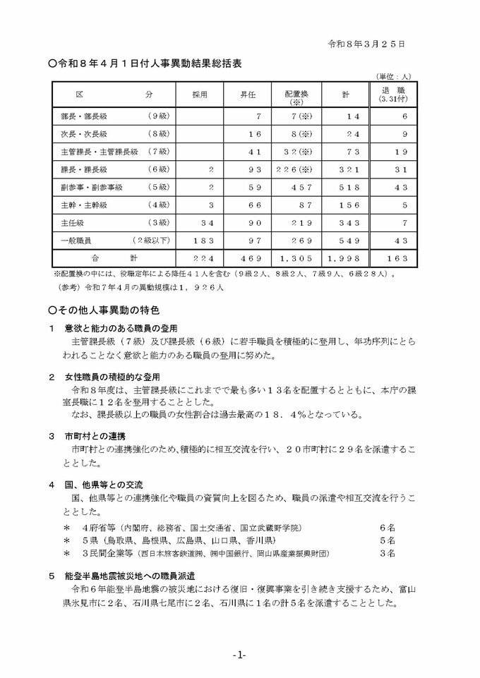 【2026年4月】岡山県職員 第2次人事異動 主管課長・主管課長級(昇任・配置換え)退職者など【画像一覧掲載】 RSK山陽放送 2026年3月25日(水) 17:04 国内 異動の規模 【第2次異動 名簿一覧を見る】