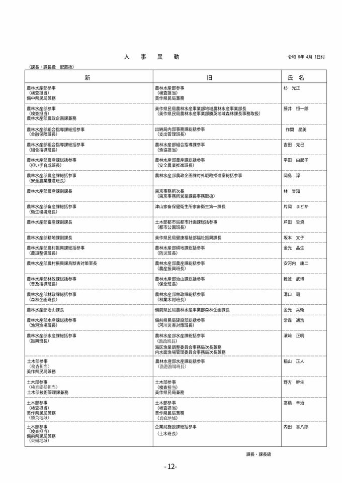 【2026年4月】岡山県職員 第2次人事異動 主管課長・主管課長級(昇任・配置換え)退職者など【画像一覧掲載】 RSK山陽放送 2026年3月25日(水) 17:04 国内 課長・課長級 配置換 【第2次異動 名簿一覧を見る】