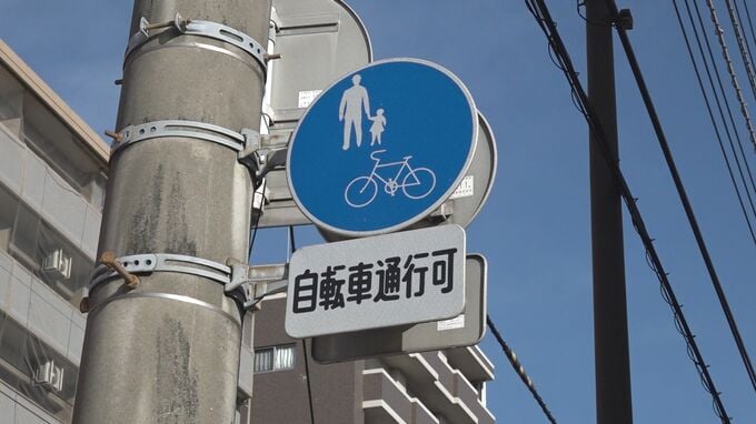 ▼「自転車通行可」の標識がある歩道