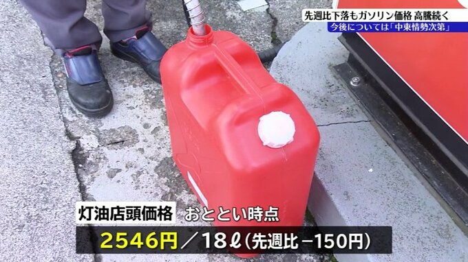 また灯油の平均店頭価格は、ひと缶18リットルあたり2546円で、先週に比べ150円安くなりました。