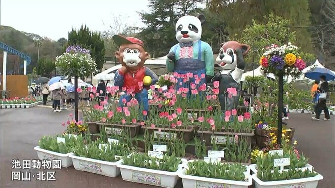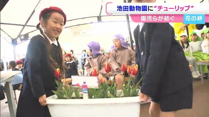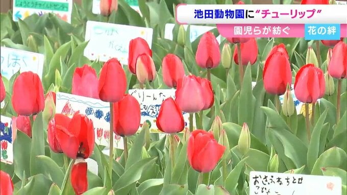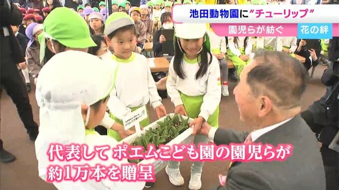 岡山県内の保育施設に通う子どもたちが育てたチューリップ約1万本が池田動物園に贈られました。
