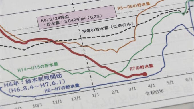筑後川流域では、去年9月以降、降水量が6か月連続で平年を下回っていて、去年10月から先月までの5か月間の降水量は過去最少となっています。