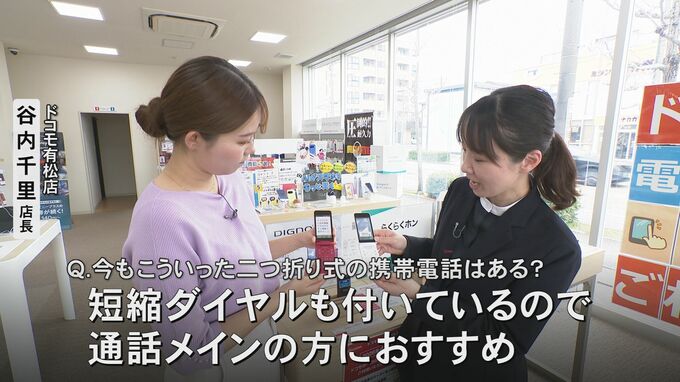 ◇ドコモ有松店・谷内千里店長…(今販売しているもので、こういった二つ折り式の携帯電話はあるのですね?)「プッシュ式でボタンが押しやすいものを好まれている方もいる。短縮ダイヤルもついているので、通話メインの方にはおすすめ」