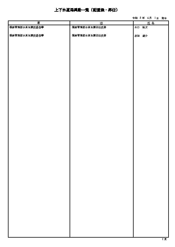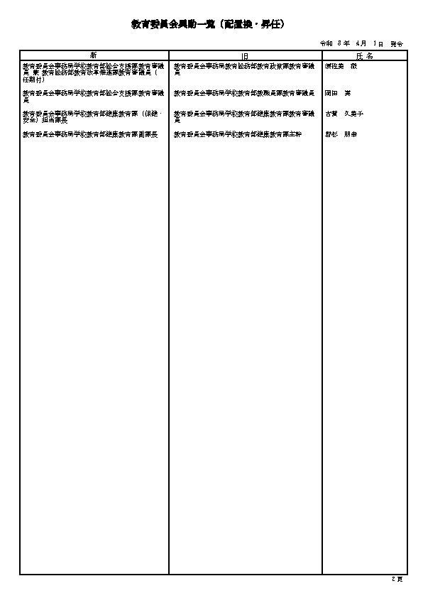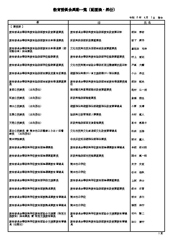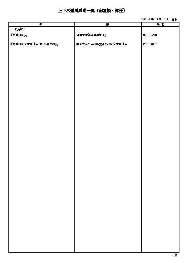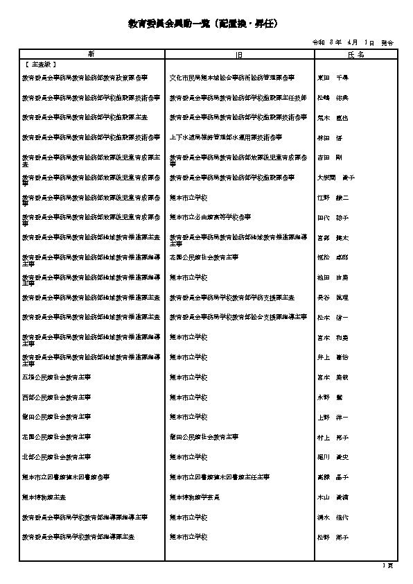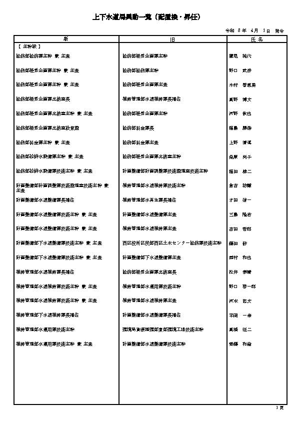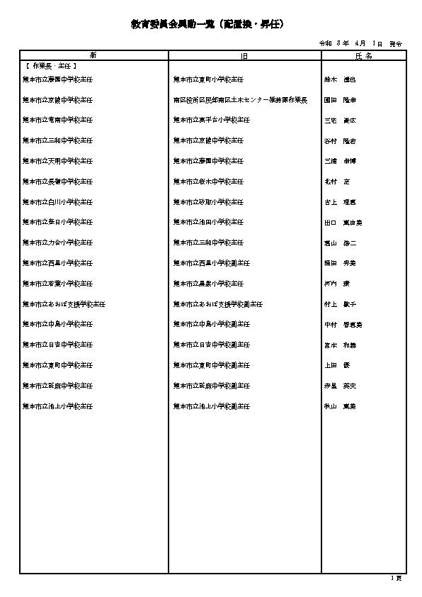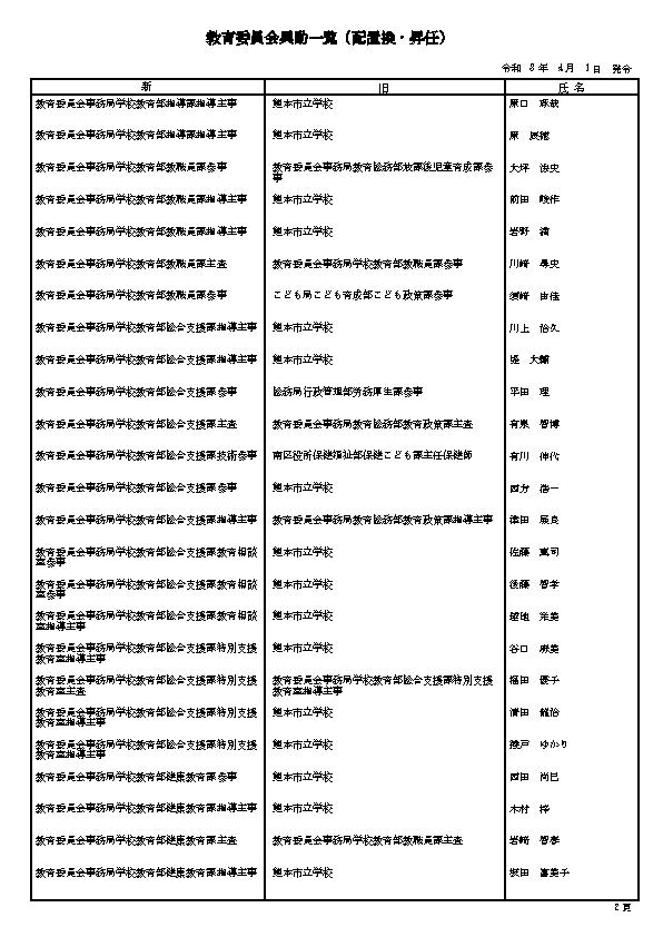 3. 熊本市の職員 人事異動情報2026 〈特別職・局長級~主任級〉〈病院局/消防局/議会局/交通局/上下水道局/教育委員会/監査事務局/人事委員会/選挙管理委員会/農業委員会〉名簿一覧