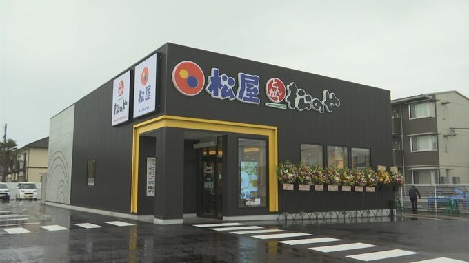 「牛めし」の松屋とカツ料理を提供する「松のや」の複合店舗で、25日のプレオープンでは11時の開店と同時に多くの客が訪れました。
