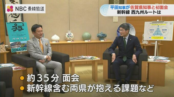 平田知事は佐賀県の山口知事とおよそ35分間面会し、就任のあいさつをした後新幹線問題を含む両県が抱える課題などについて話しました。