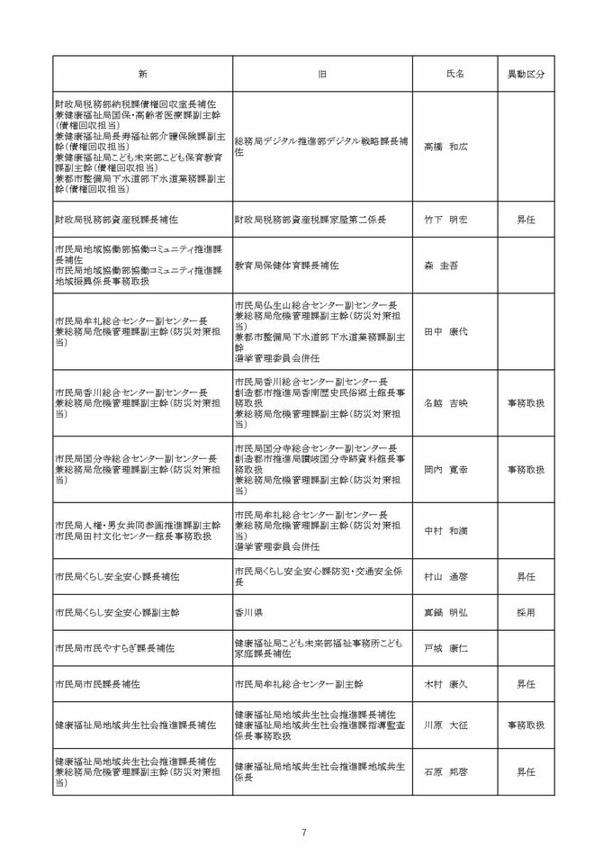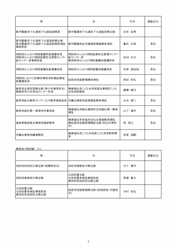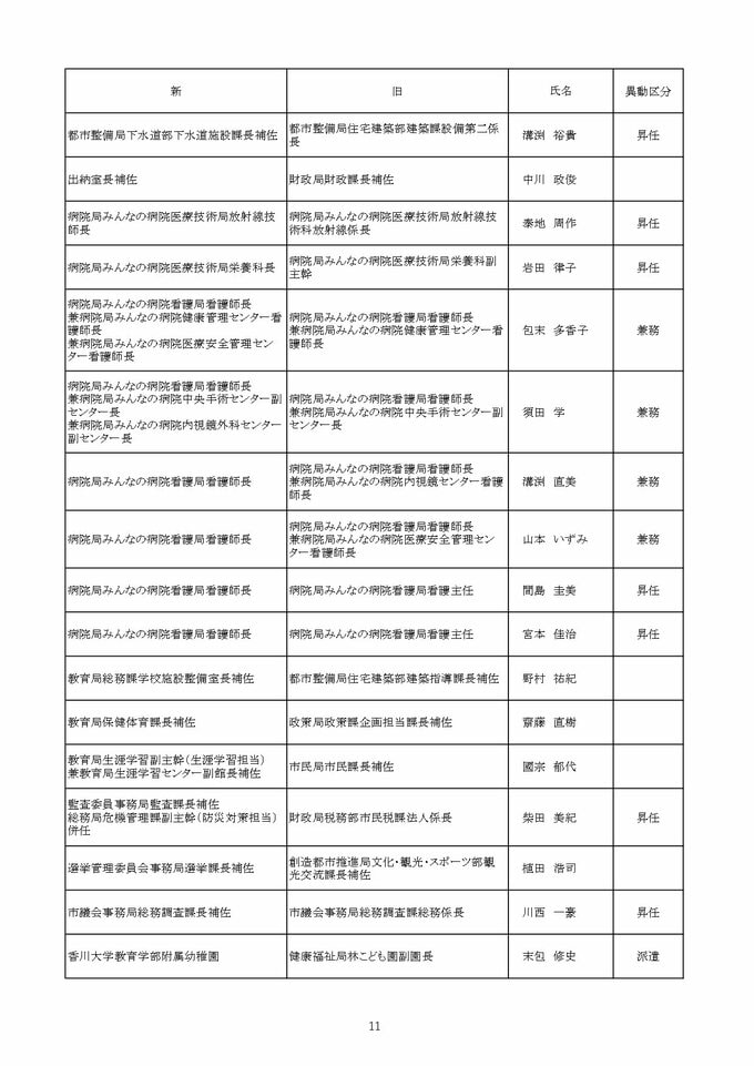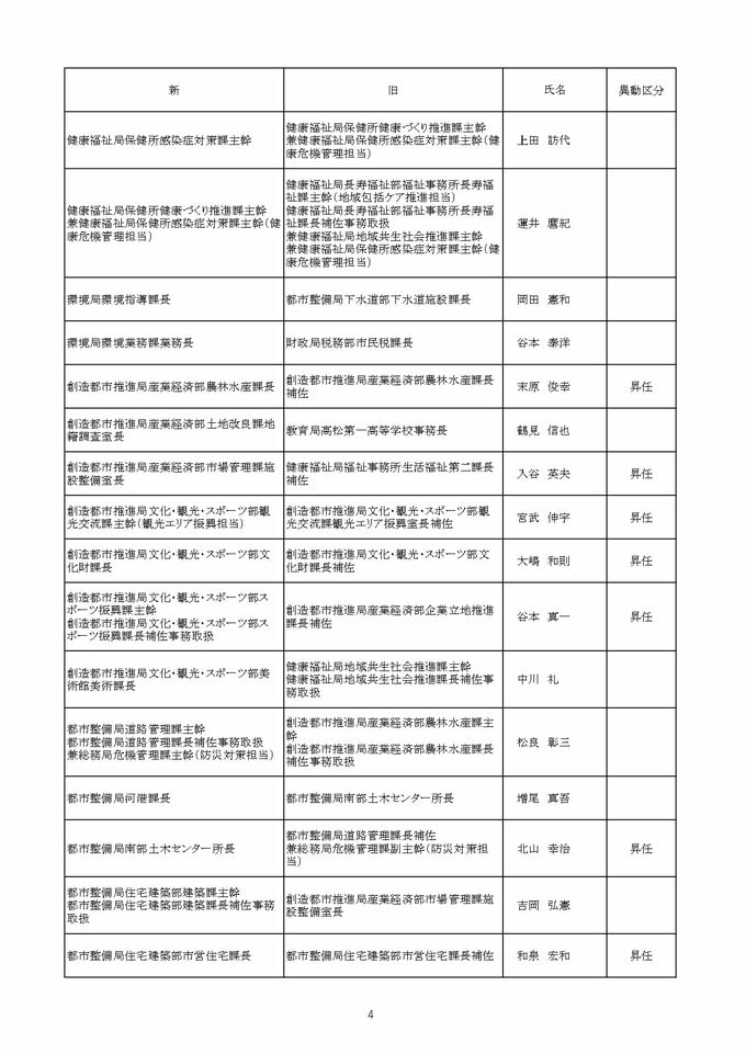 【2026年4月】高松市職員 人事異動 局長級・局次長級(昇任・採用)退職者など【画像一覧掲載】 RSK山陽放送 2026年3月26日(木) 12:13 国内 課長級 【名簿一覧を見る】 【名簿一覧を見る】