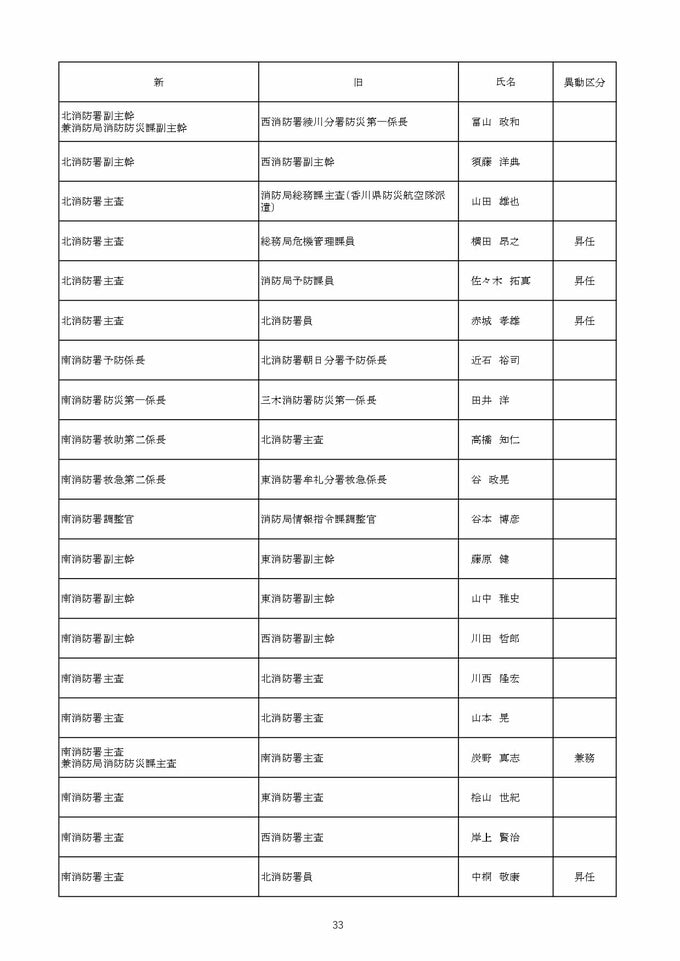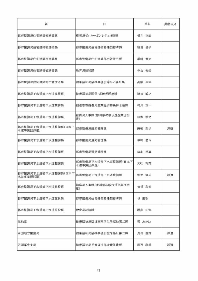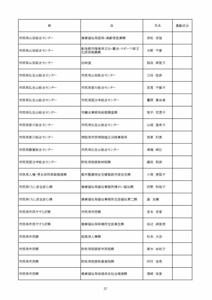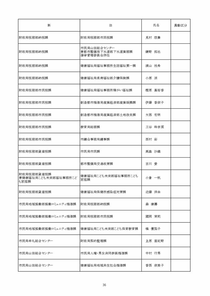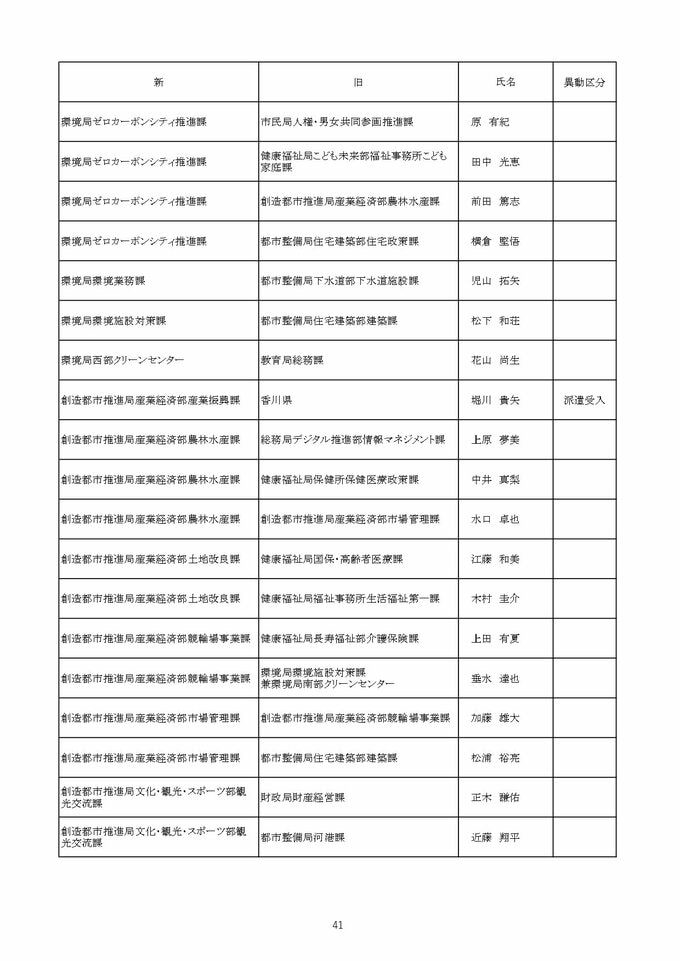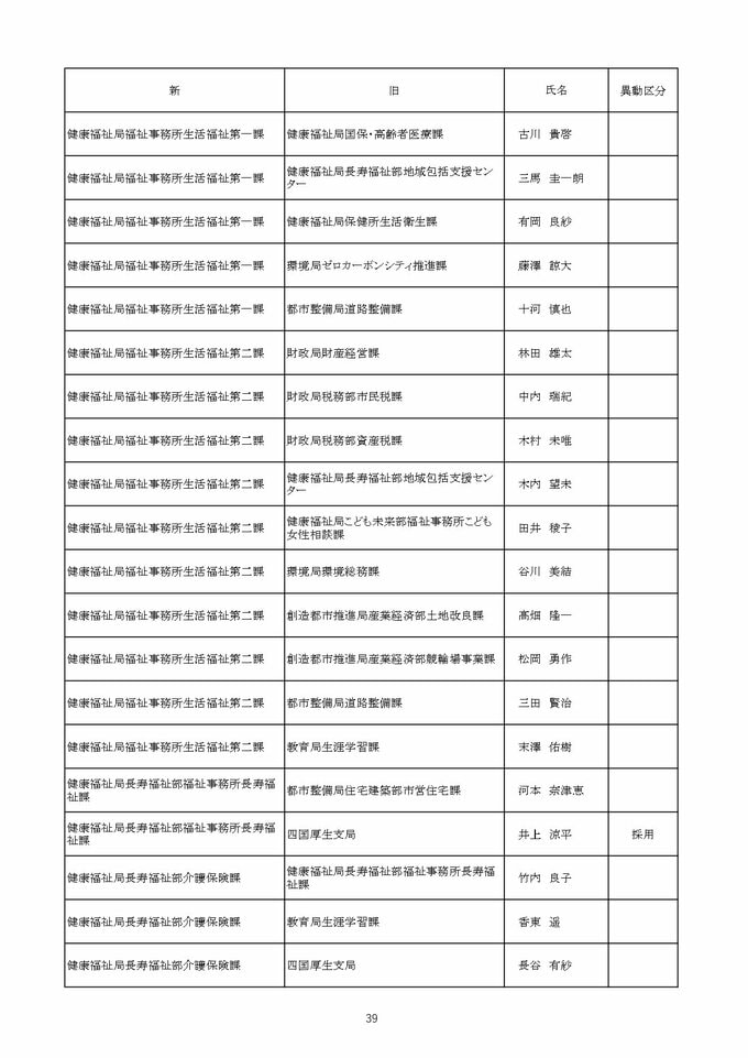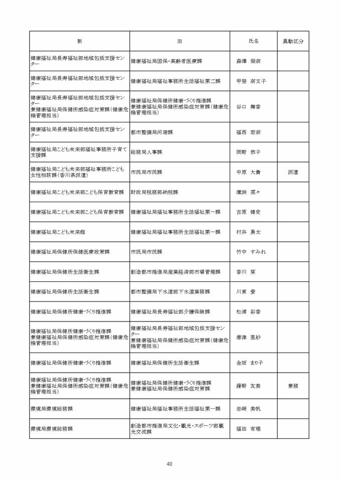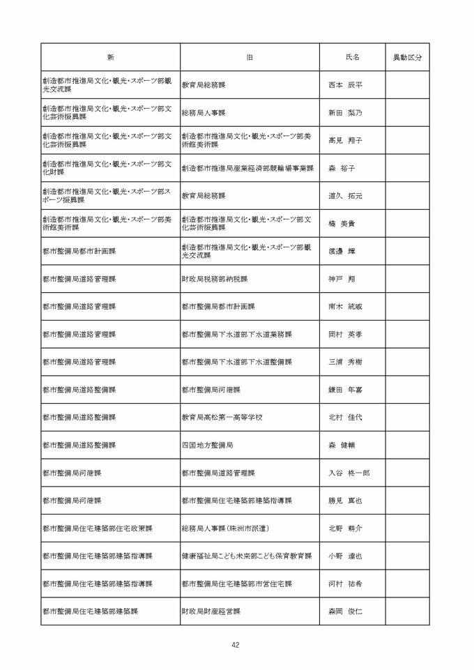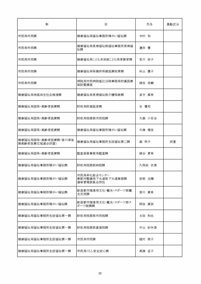 【2026年4月】高松市職員 人事異動 局長級・局次長級(昇任・採用)退職者など【画像一覧掲載】 RSK山陽放送 2026年3月26日(木) 12:13 国内 係長級・一般職(市長部門) 【名簿一覧を見る】 【名簿一覧を見る】
