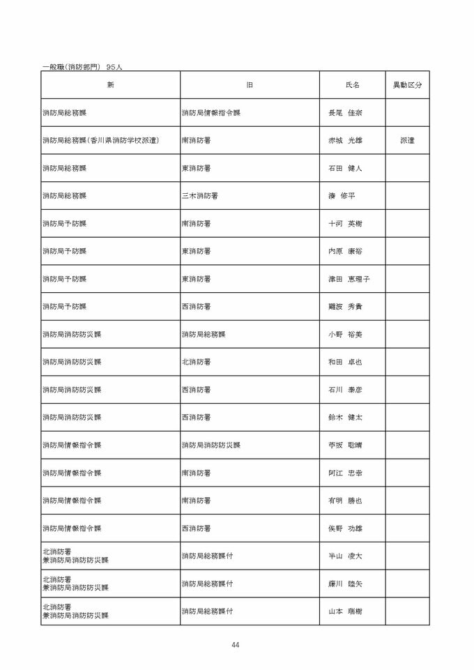 【2026年4月】高松市職員 人事異動 局長級・局次長級(昇任・採用)退職者など【画像一覧掲載】 RSK山陽放送 2026年3月26日(木) 12:13 国内 一般職(消防部門) 【名簿一覧を見る】 【名簿一覧を見る】