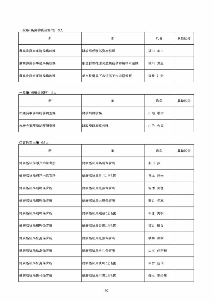 【2026年4月】高松市職員 人事異動 局長級・局次長級(昇任・採用)退職者など【画像一覧掲載】 RSK山陽放送 2026年3月26日(木) 12:13 国内 一般職(病院部門・教育委員会部門など)・保育教育士職など 【名簿一覧を見る】 【名簿一覧を見る】