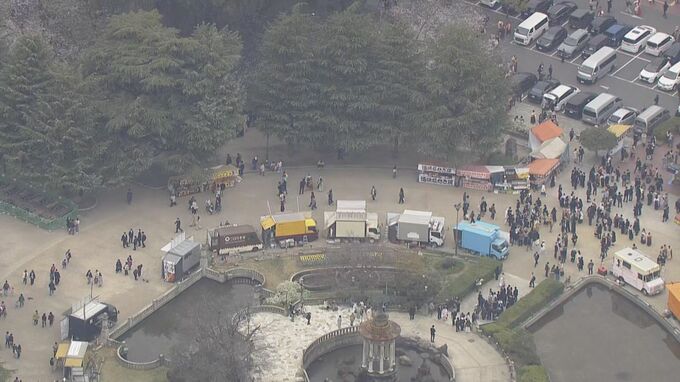 園内では3月20日(金・祝)から桜まつりがスタート。連日40台ほどのキッチンカーが並び様々なグルメを提供。花見客にも好評です。