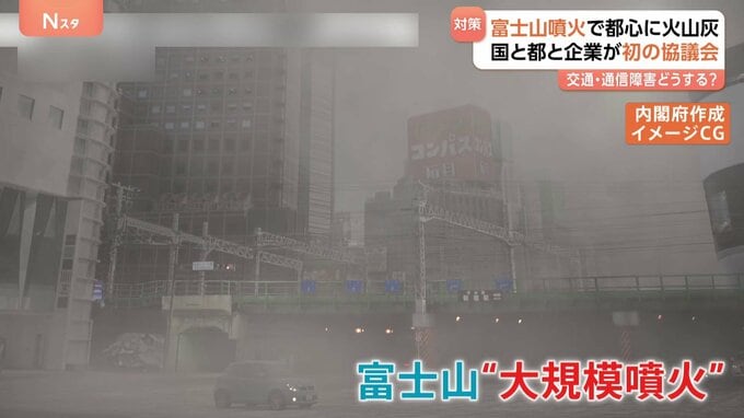都心でも火山灰による被害が予想される富士山の大規模噴火。きょうはじめて、国や東京都が民間企業などとともに対策を話し合う協議会が開かれました。東京・新宿のビル群に降る大量の火山灰。これは内閣府が作成し…