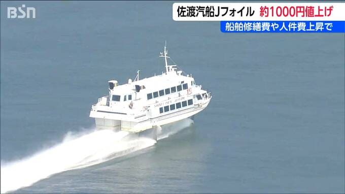 『佐渡汽船』は24日、4月以降の運賃について発表しました。それによりますと、ジェットフォイルの片道料金は現在よりおよそ1000円高い7970円になります。また、カーフェリー(新潟航路)は、1等席がおよそ800円上が…