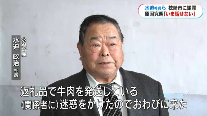 (水迫畜産・水迫政治社長)「返礼品で牛肉を発送している(関係者に)迷惑をかけたのでおわびに来た」