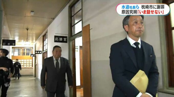 水迫畜産の水迫政治社長は25日、水迫政輝取締役とともに枕崎市役所を訪れ、前田祝成市長と非公開で30分ほど面会しました。