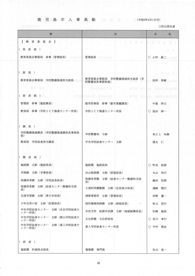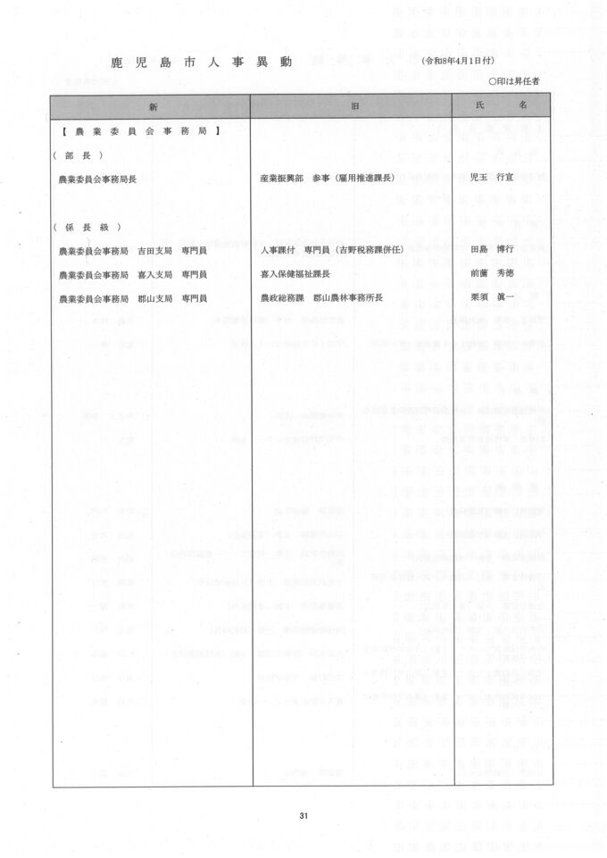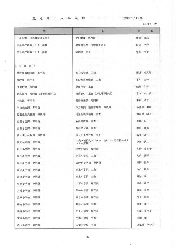 鹿児島市人事異動一覧【異動名簿】鹿児島市役所2026