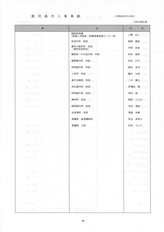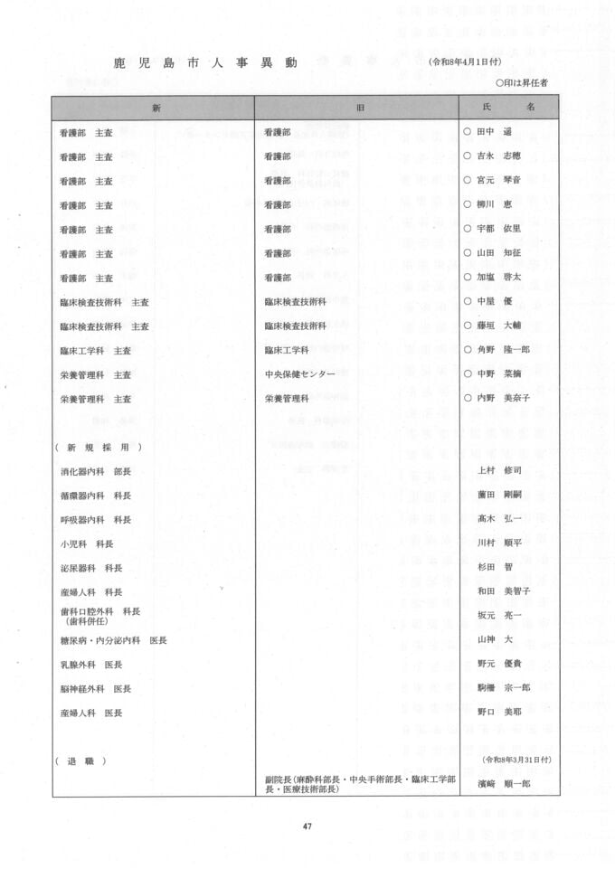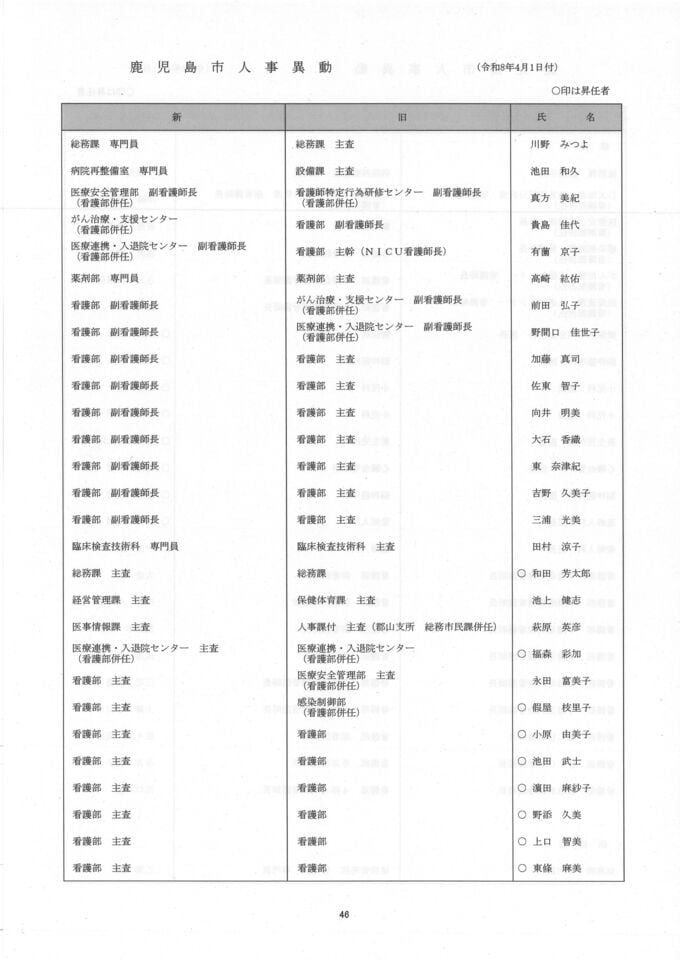 鹿児島市人事異動一覧【異動名簿】鹿児島市役所2026