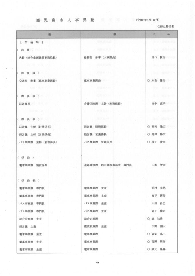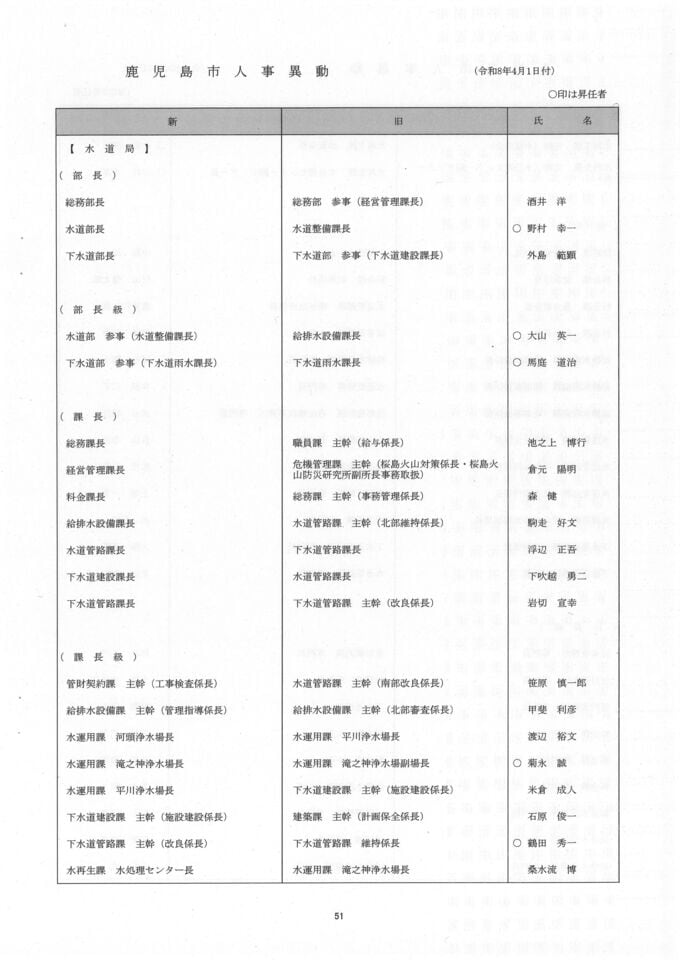 鹿児島市人事異動一覧【異動名簿】鹿児島市役所2026