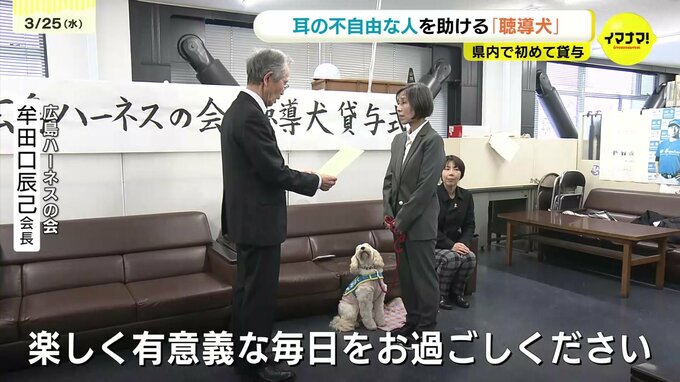 「聴導犬(ちょうどうけん)」ってご存じでしょうか? 耳の不自由な人を助ける補助犬で、25日、広島県内で初となる「聴導犬」の貸与式が行われました。