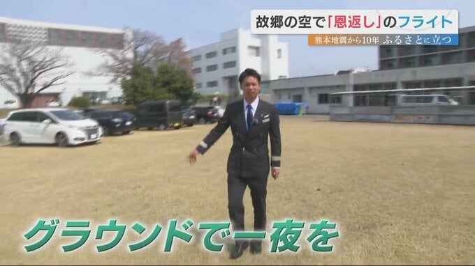 周りに倒れてくるものがないグラウンドに集まり、一夜をあかしました。