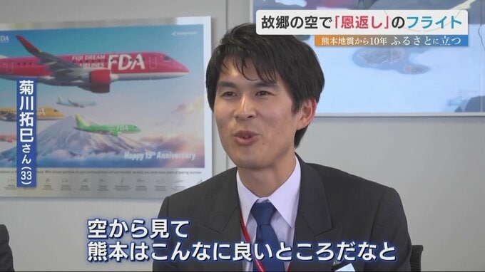 菊川拓巳さん「普段は景色を楽しむ余裕ってなかなかないので、自分たち自身も楽しみですね。阿蘇山もあれば天草とか、熊本城もありますし、いろいろな観光名所があるので、それを空から見て、熊本ってこんなにいいとこだなっていうのを再認識してもらえたらいいなってすごく思います」