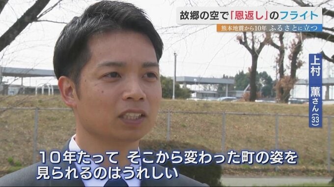 上村薫さん「被災して、ブルーシートの景色を見て訓練して、10年経って、そこから変わった町の姿を見られるのは嬉しいですし、パイロットとしても会社としても、今後もっと熊本に貢献していけたらいいのかなと思います」