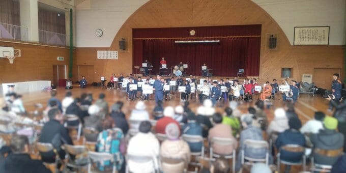 3/15、消防音楽隊員有志のみなさまによる、能登半島復興応援コンサート「エール! 音の架け橋」が町野小学校で開催されました。
