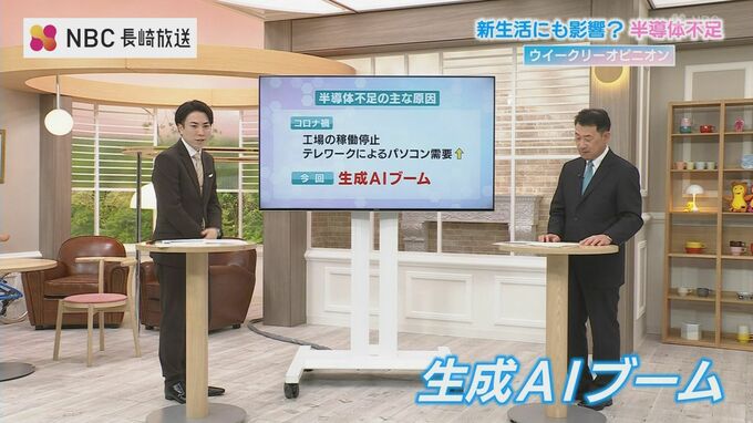 コロナ禍の時は、工場の稼働停止や物流の混乱、そしてテレワークによるパソコン需要の急増などが原因でした。しかし今回の主因は、2023年頃から爆発的に広がった「生成AIブーム」が主な要因です。
