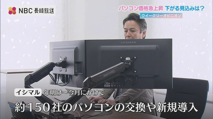 オフィス機器の取り扱いや企業のデジタル化支援を手がける長崎市の「イシマル」。メーカーから仕入れたパソコンを地元企業へ納入・設置していますが、去年の暮れ頃から端末の価格高騰に直面しています。