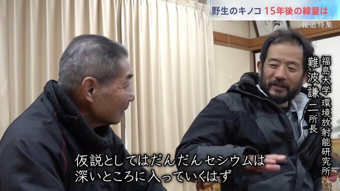 2026年2月、難波教授はキノコの線量を報告するため高橋さんを訪ねた。帰還困難区域の近くでとったキノコの放射線量について、調査の結果を報告した。