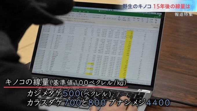 「カジメタケが500(ベクレル)。カラスダケは700と800。ブナシメジ4400」