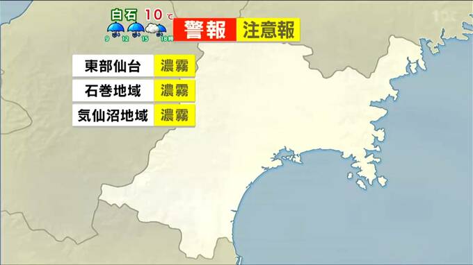 現在、沿岸地域に濃霧注意報が発表されています。沿岸部を中心に27日昼前まで濃い霧による見通しの悪さに注意が必要です。
