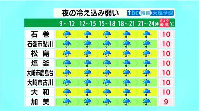 ■塩釜:10℃ ■大崎市鹿島台:10℃ ■大崎市古川:10℃