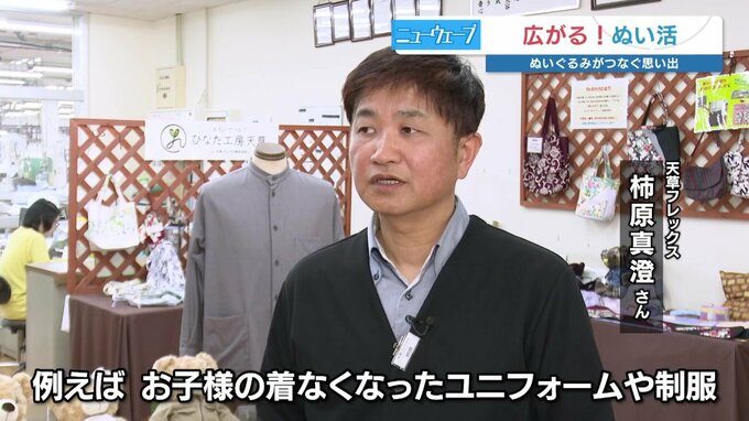 天草フレックス 柿原真澄さん「ご主人が亡くなって、7回忌の時、子ども達に贈る物はないか、と探していた方が、スーツで『ぬい服』を作るという依頼を受けた」