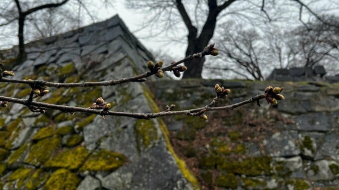 公園内のサクラのつぼみは少しずつ膨らんできていますが、開花まではもう少しかかりそうです。