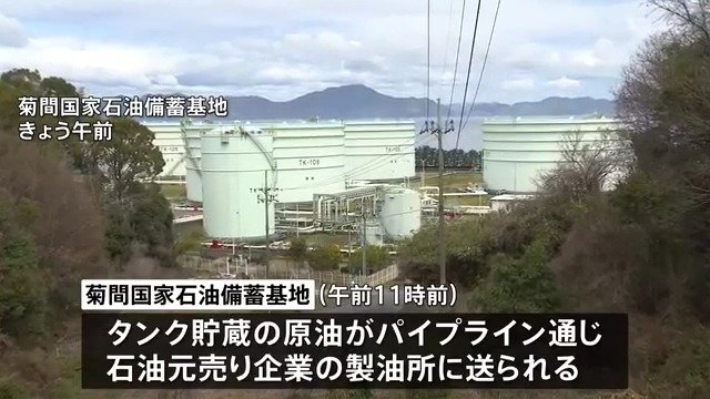国家備蓄の放出は、石油輸出の要衝であるホルムズ海峡が事実上封鎖され、日本に来られるタンカーが減っていることをうけた措置で、ロシアによるウクライナ侵攻で原油価格が高騰した2022年以来、およそ4年ぶりです。